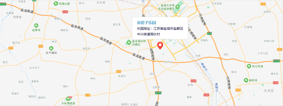 其他地市前来的游客可根据导航地图开往盐淮高速,沿高速行驶在盐都区中兴街道周伙村草房子乐园